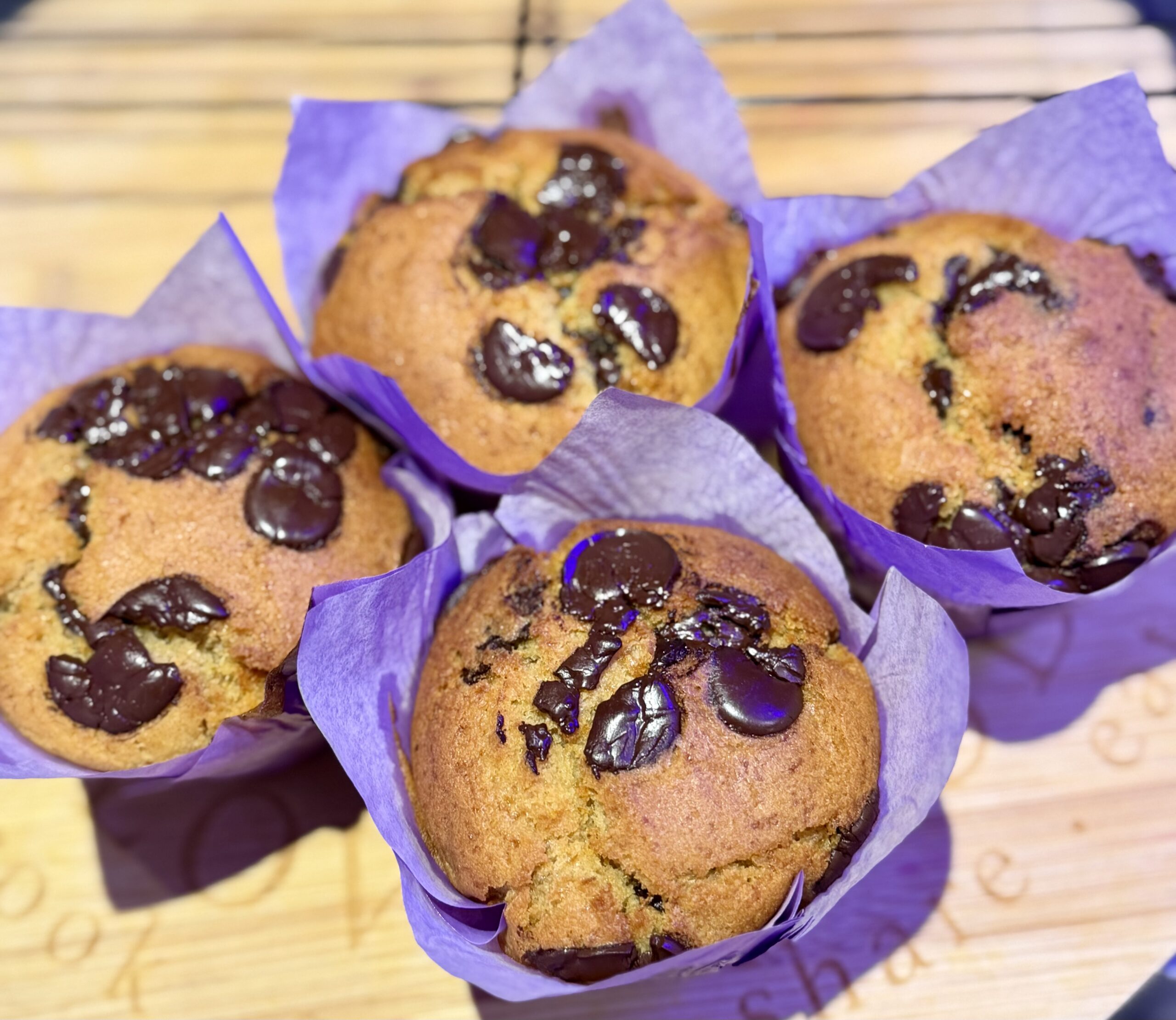 Chocolate Chip Muffins – Gluten Free, Vegan, Refined Sugar Free (4 Muffins)